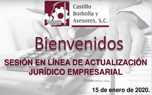 Castillo Borbolla y Asesores, S.C. te invitan a su sesión online gratuita, el próximo 15 de Enero, donde se dará a conocer sobre la Actualización Jurídico Empresarial del mes de Enero 2020