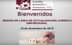 Castillo Borbolla y Asesores, S.C. te invitan a su sesión online gratuita, el próximo 18 de Diciembre, donde se dará a conocer sobre la Actualización Jurídico Empresarial del mes de Diciembre 2019