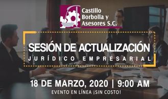 Castillo Borbolla y Asesores, S.C. te invitan a su sesión online gratuita, el próximo 18 de marzo, donde se dará a conocer sobre la Actualización Jurídico Empresarial del mes de Marzo 2020