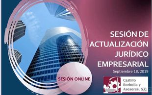 Castillo Borbolla y Asesores, S.C. te invitan a su sesión online gratuita, el próximo 18 de Septiembre, donde se dará a conocer sobre la Actualización Jurídico Empresarial del mes de Septiembre 2019.