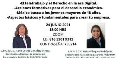Castillo Borbolla y Asesores, S.C. te invitan a su sesión online gratuita, el próximo 18 de agosto de 2021 donde se dará a conocer sobre la Actualización Jurídico Empresarial del mes de agosto 2021. Sé parte de SINDEMEX y disfruta de todos los beneficios de pertenecer a nuestra red empresarial. Acompáñanos, el evento es gratuito con cupo limitado.