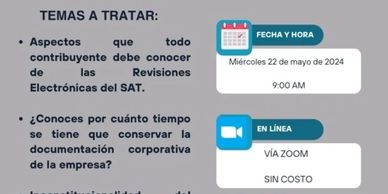 Castillo Borbolla y Asesores, S.C. te invitan a su sesión online gratuita, el próximo 22 de mayo de 2024 donde se dará a conocer sobre la Actualización Jurídico Empresarial del mes de mayo 2024.