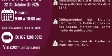 Castillo Borbolla y Asesores, S.C. te invitan a su sesión online gratuita, el próximo 22 de octubre de 2025 donde se dará a conocer sobre la Actualización Jurídico Empresarial del mes de octubre 2025.